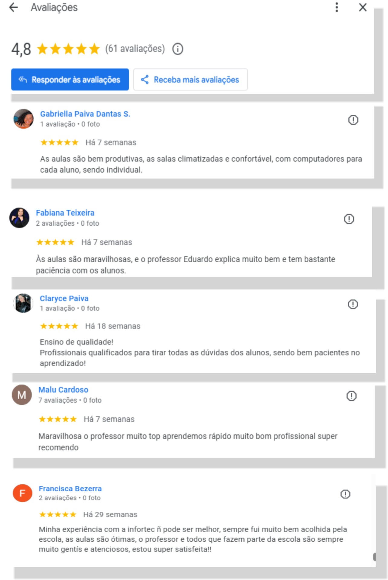 Tudo isso com aulas 100% Práticas e PRESENCIAL com um método diferenciado e aprovado por nossos alunos, venha VOCÊ também para INFORTEC - Cursos Profissionalizantes.